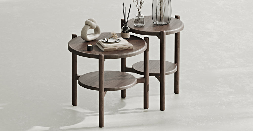Vervollständigen Sie Ihren Wohnraum auf moderne Weise mit den natürlichen Massivholz Norac Couchtischen, die in drei verschiedenen Größen erhältlich sind.