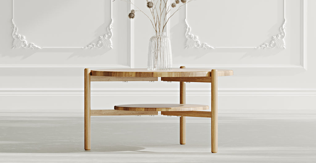 Vervollständigen Sie Ihren Wohnraum auf moderne Weise mit den natürlichen Massivholz Norac Couchtischen, die in drei verschiedenen Größen erhältlich sind.